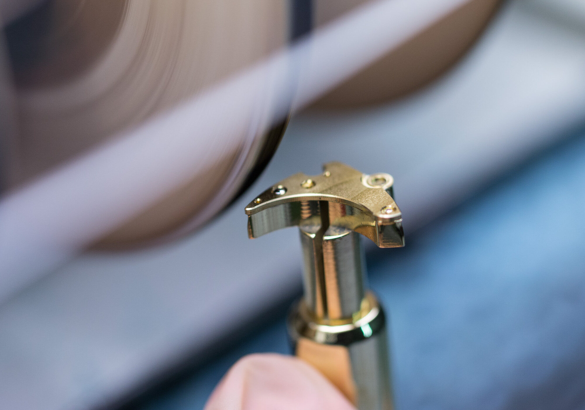 La haute précision technologique prépare le terrain pour le geste de l'artisan. L'œil et la main apportent le supplément d'âme indispensable à la Haute Horlogerie. L'anglage des ponts, le perlage de la platine et les finitions manuelles confèrent à chaque pièce son caractère unique et sa profondeur esthétique.
